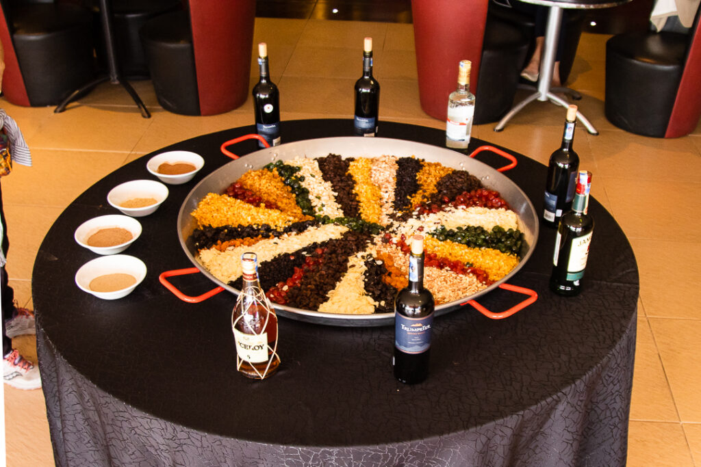 The array of species, dried fruits and various spirits ready for the cake mixing ceremony.